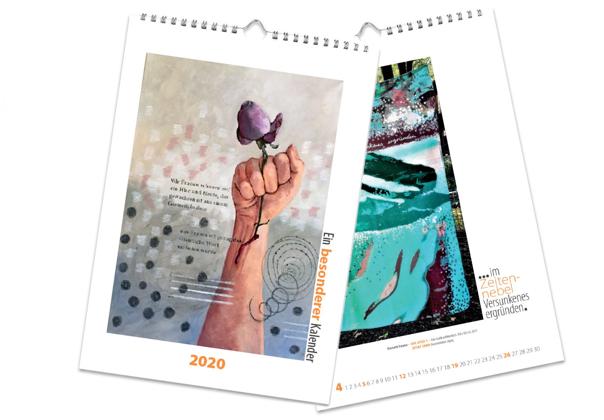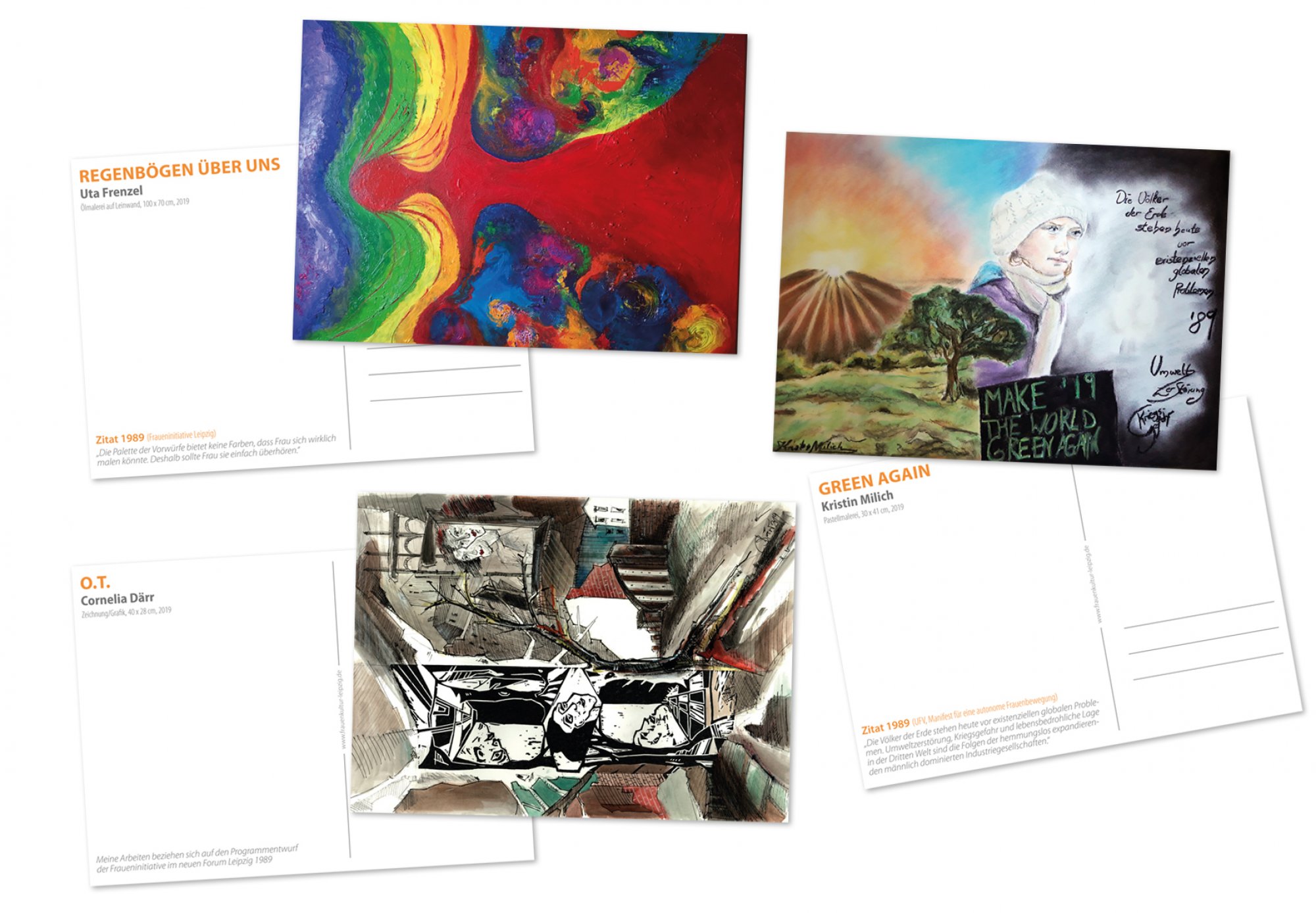 Daher haben wir mit der Frauenkultur Leipzig einen wunderbaren Jahreskalender und Postkartenbundel mit den ausgestellten Werken gemacht. Der Kalender wurde auf hochwertigem Bilderdruck auf A4 Format in einer Auflage von 300 Stück gedruckt und versandt. Die Postkartenbundel mit den besten Wünschen für 2020 an Künstler, Teilnehmende und Mitmachende und Interessierte verschenkt.